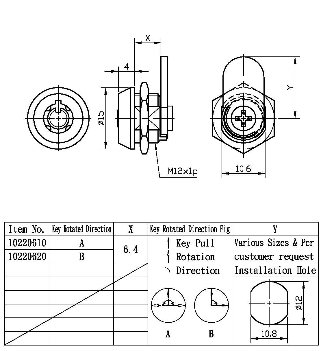 1、鎖心內牙採螺絲固定2、銅或鋅合金鎖殼及鎖心3、適用於金屬/非金屬、木門、箱子、盒子、工具櫃、抽屜等4、500 個以上號碼變化5、附舌片及螺帽(舌片"A,B "尺寸可依客戶需求提供,或參考附件類)6、鎖心外牙採螺帽固定