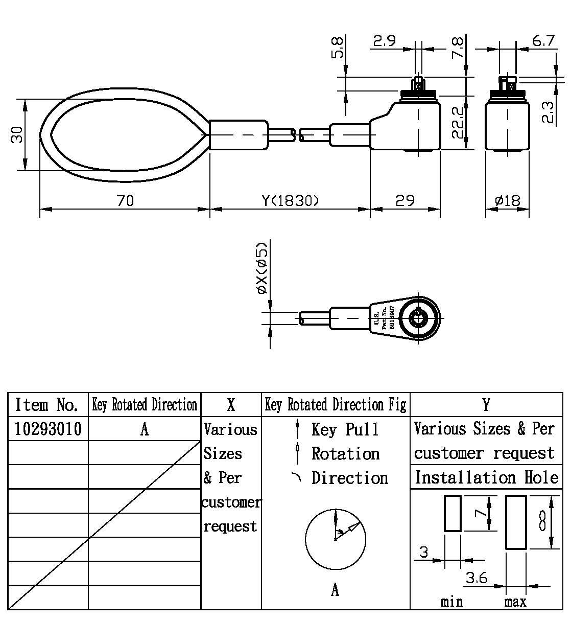 3. 如何鎖住您的電腦:將鎖置入電腦鎖孔中,另一端則將繩子拴住固定物或不易被移動物品上,鎖時只需按下鎖心,不用再取鎖匙去鎖住,只有開時才要鎖匙