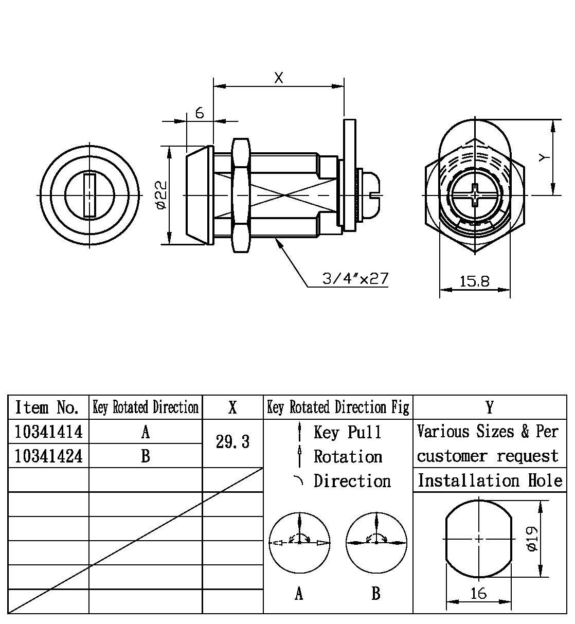 1. 除了鎖心尾採用外牙外,其餘尺寸同#103403